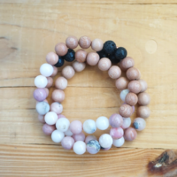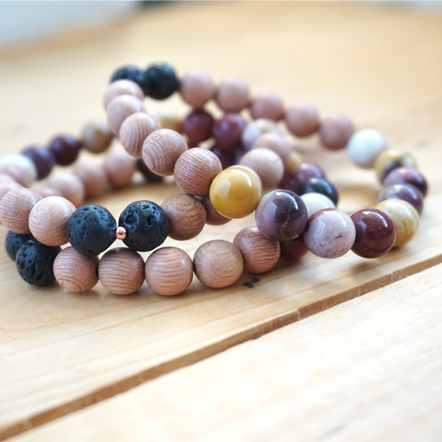 Made with mookaite, lava and rosewood. Measures 7 inches. Essential oil friendly.